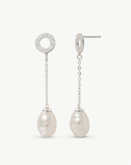 Brincos Luar com pérola orgânica de 12mm produzida na ilha de Maiorca e prata de lei 925.