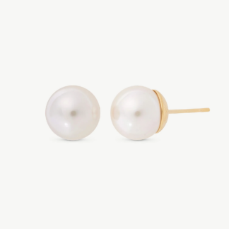 Brincos Lyra com Pérolas orgânicas de 8mm produzidas na ilha de Maiorca e Prata de lei 925 com banho de ródio