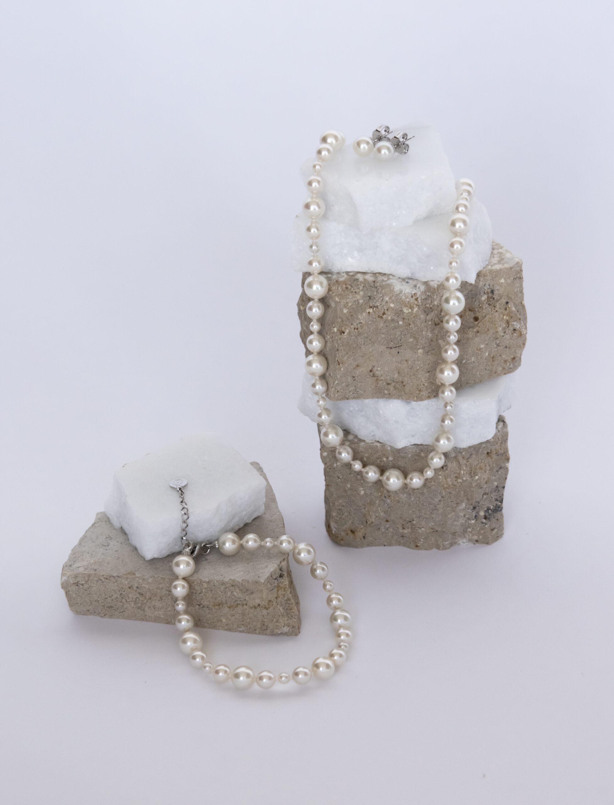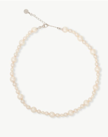 Colar de pérolas Estela com pérola orgânica de 4, 6 e 8mm produzida na ilha de Maiorca. Prata de lei 925.